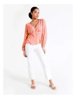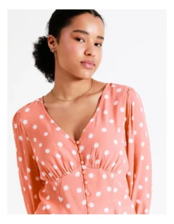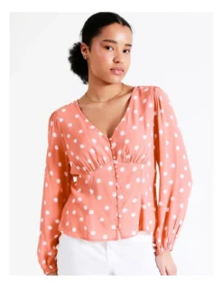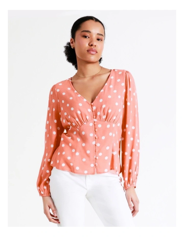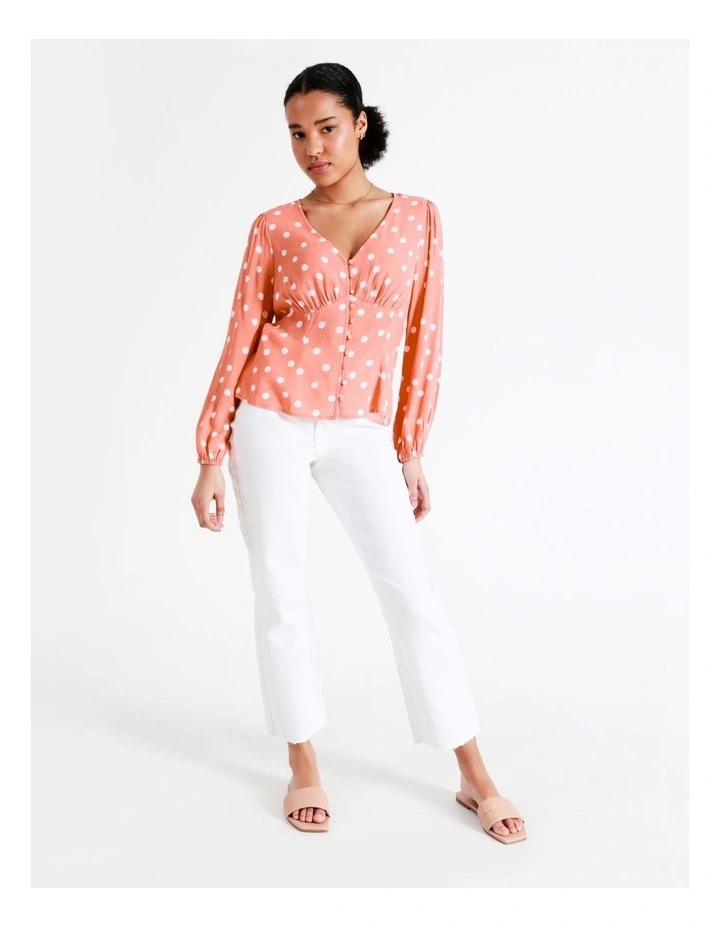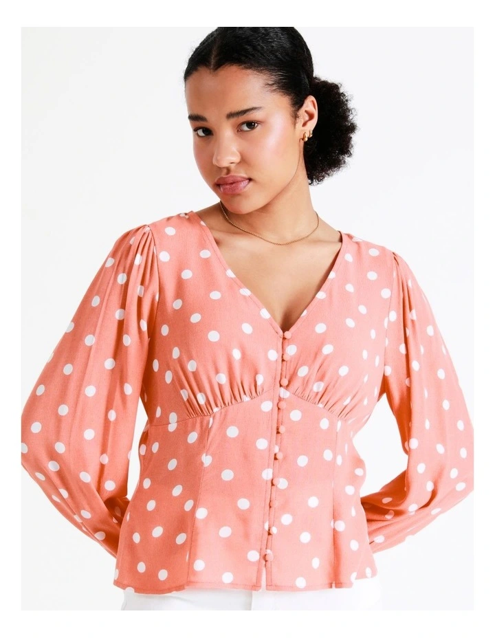 Perfect for wearing from day to night, this blouse is a versatile and sophisticated piece. Crafted from lightweight and breathable materials, this blouse boasts blouson sleeves with an all-over spotted print. Style with your favourite denim for an elevated casual look.