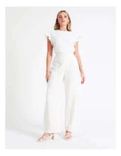 Tokito Co-Ord European Linen Blend Pinstripe Wide Leg Pants in Multi