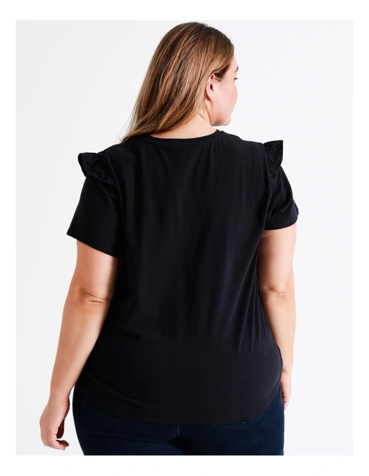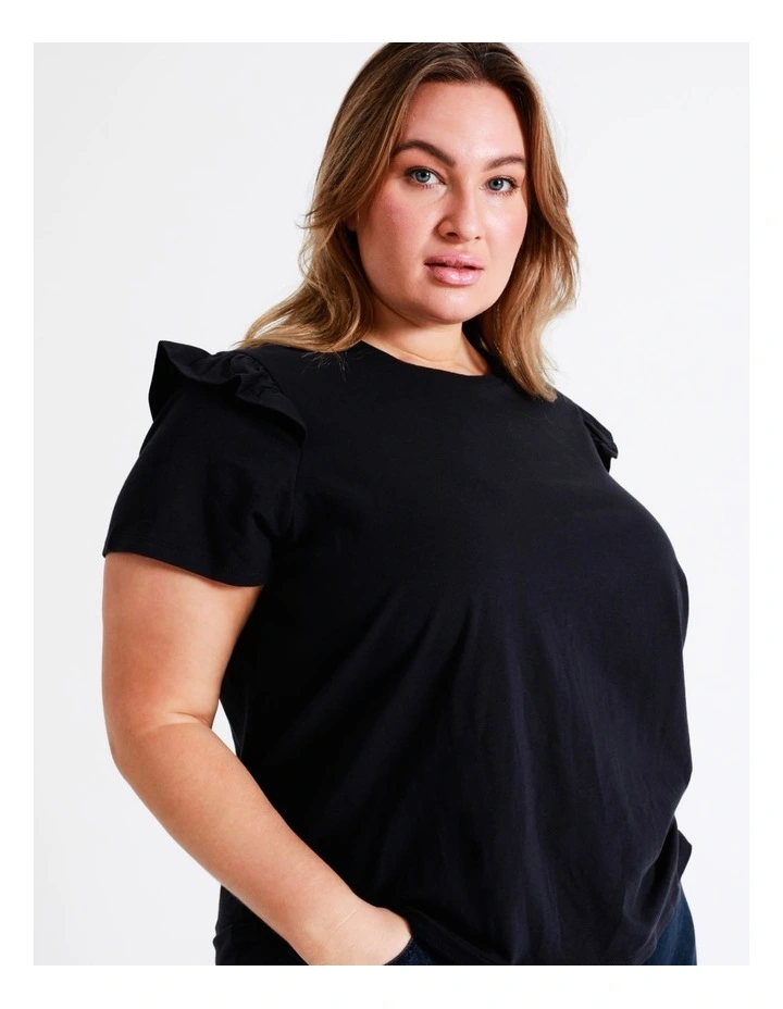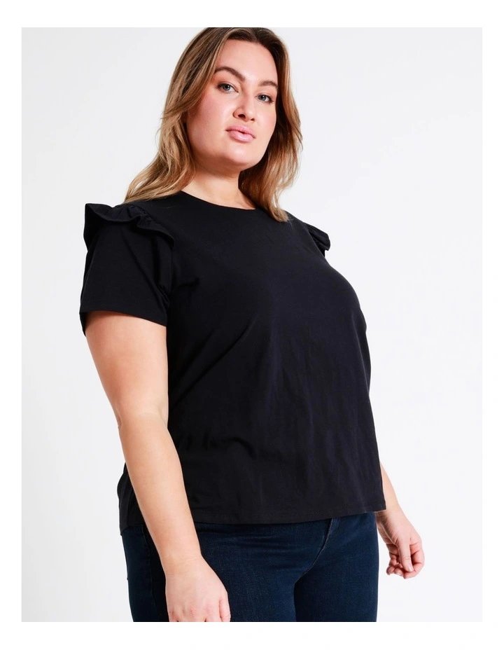 Transition from work to the weekend with a fashion forward top. This top boasts a frill sleeve detail, in a comfortable relaxed fit. Style with your favourite denim for the perfect off-duty look. Â