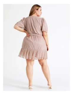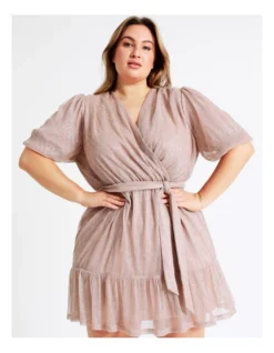 Dress to impress in a plisse mini dress. This mini length dress features a wrap design and tie waist with a chic metallic finish. Pair it with your favourite heels for an event ready look.
