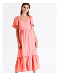 Tokito European Linen Blend Flutter Sleeve Midi Dress in Apricot
