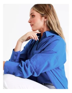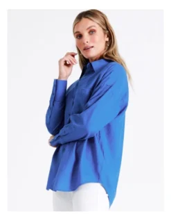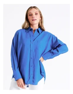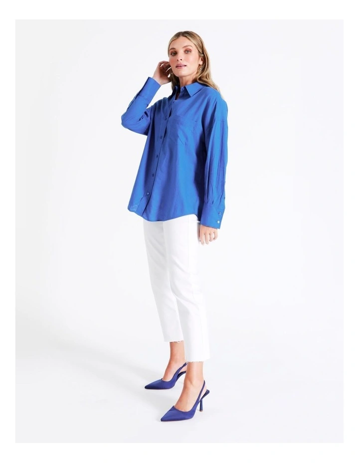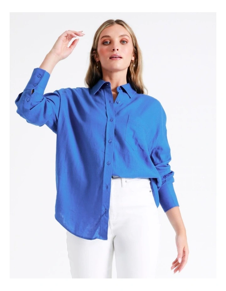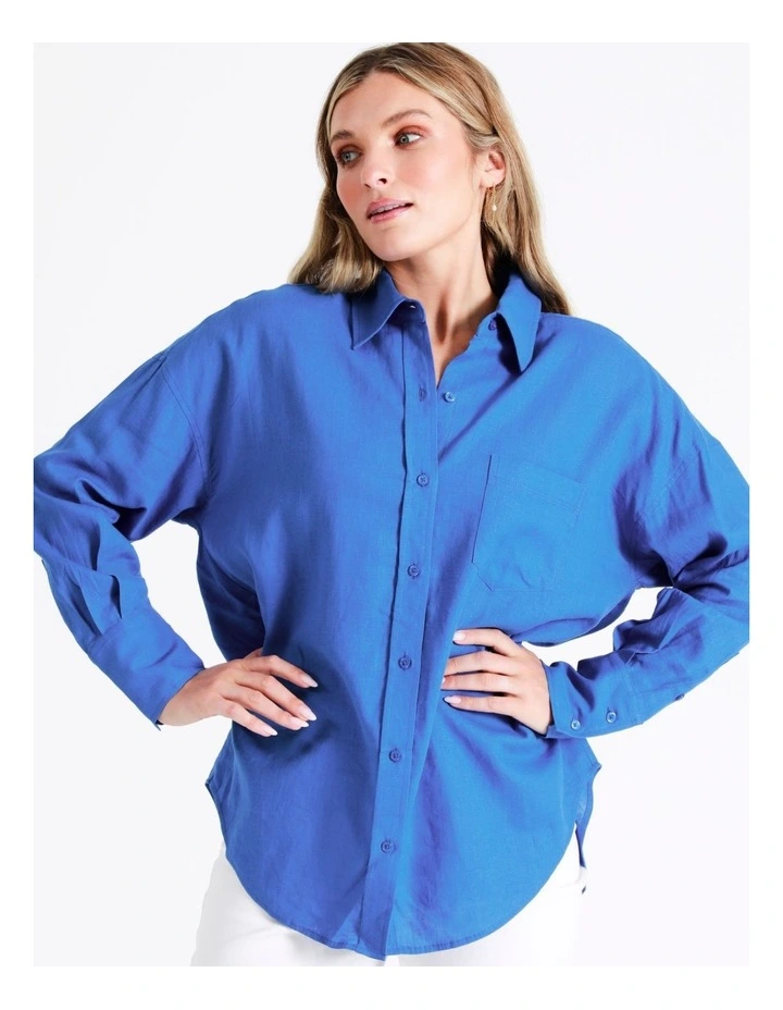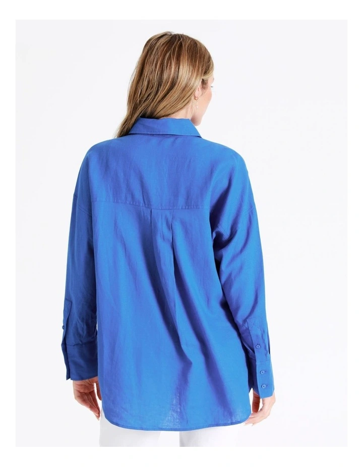 Tokitoย European Linen Blend Oversized Shirt in Cobalt