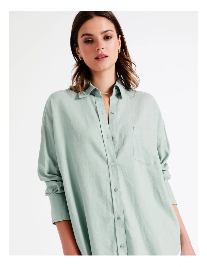 Style a model-off-duty look with an oversized shirt. This shirt is made from a linen blend for comfort and boasts an oversized fit for stylish, on-trend wear. The perfect layering piece, you can wear this shirt on its own or over your favourite tees and tops.