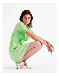 Beautiful and breathable, this mini dress is perfect for your next day out. Decorated with an all over print, a sweetheart neckline and frill details at the sleeve openings, this dress is ultra-flattering. Wear it with heels for an event-ready finish.