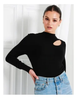 A classic top with a twist, our high neck cut out knit is perfect for elevating your look. Designed with a high neckline and long sleeves, this top boasts a trendy cut out detail at the chest. Style it with a skirt or wide leg jeans for a figure flattering look.