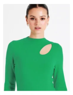Tokito High Neck Cut Out Knit Top In Green
