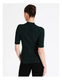 Tokito High Neck Short Sleeve Knit Top in Dark Green