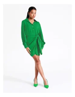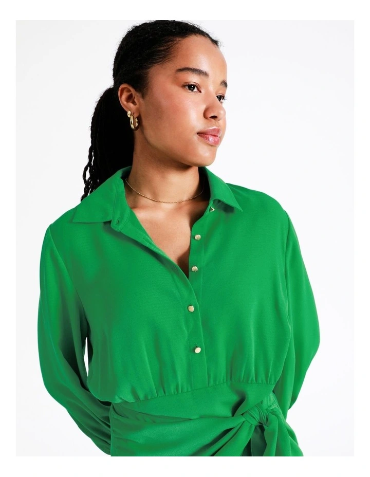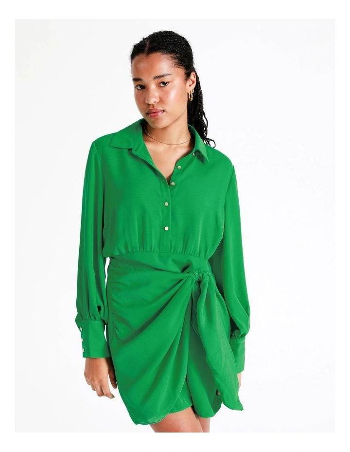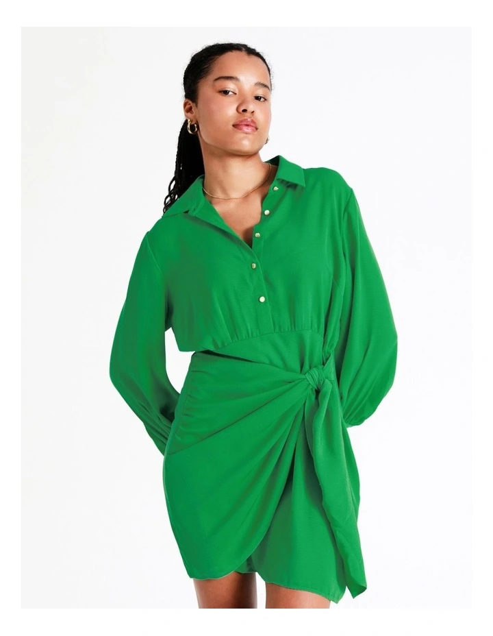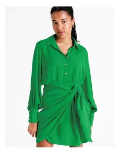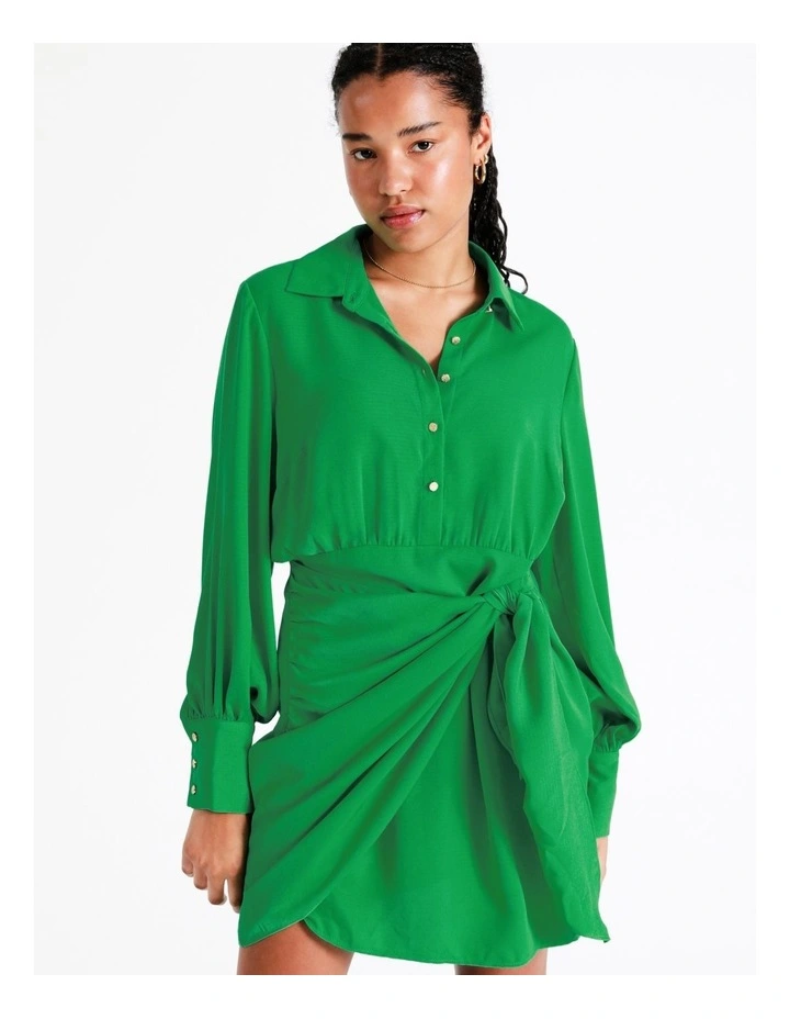 Tokito Petites Recycled Knotted Wrap Skirt Mini Shirt Dress in Green