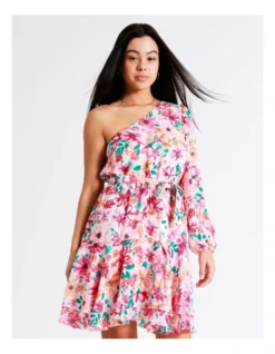 TokitoĀ One Shoulder Flounce Recycled Mini Dress in Assorted