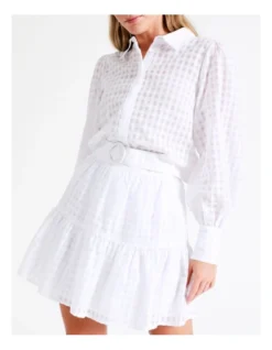 Tokito Organic Cotton Blend Belted Check Mini Skirt in White