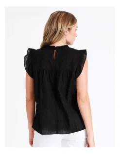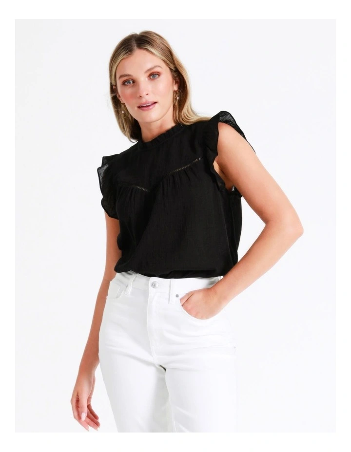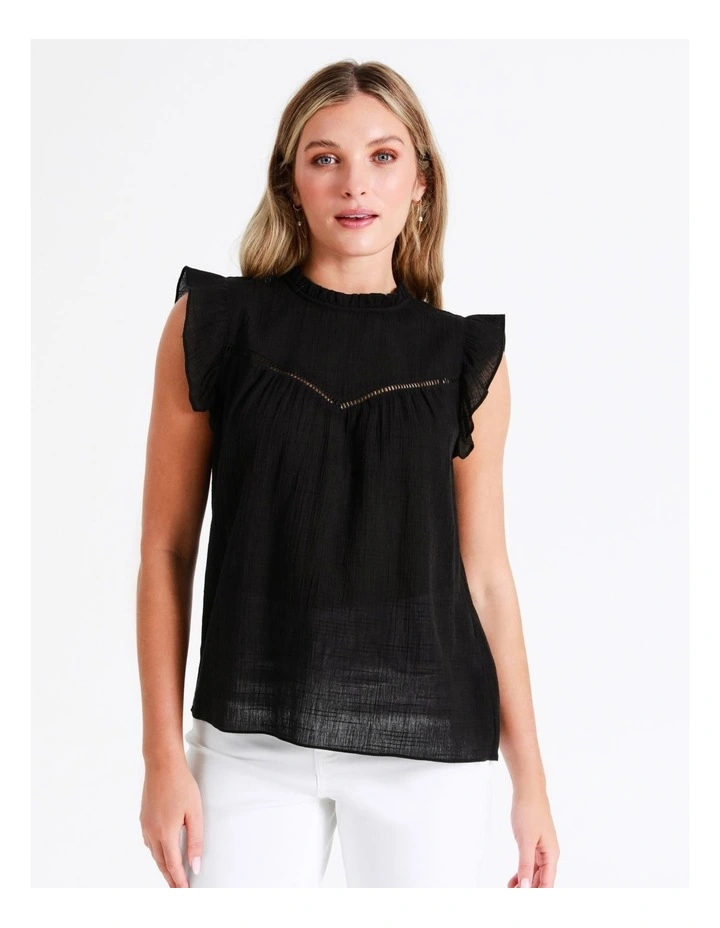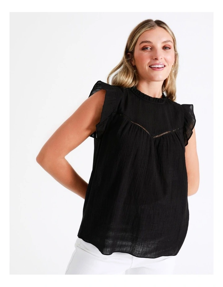 Tokito Organic Cotton Blend Ladder Trim Top in Black