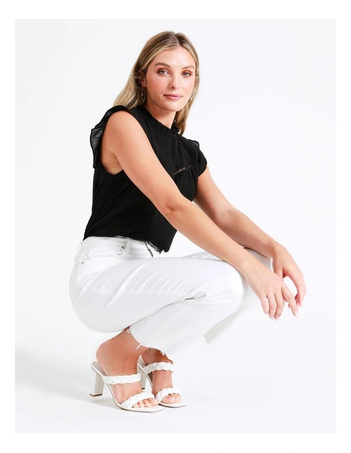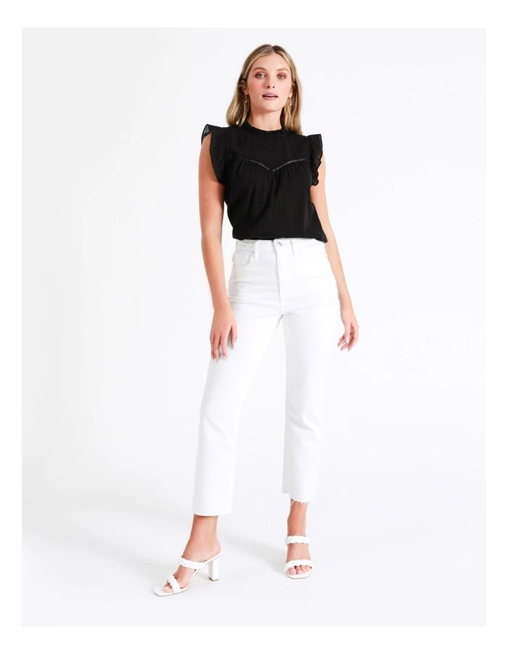 A classic top with a twist, this piece will be your new favourite item. Made with organic cotton for comfort, this top is decorated with frill sleeves and ladder trim detailing across the chest. Pair with denim for an elevated casual look, or with a skirt for an event ready ensemble.