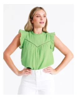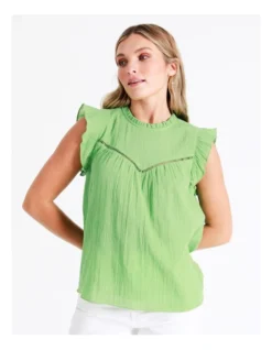 Tokito Organic Cotton Blend Ladder Trim Top in Green