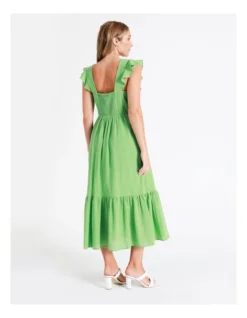 Tokito Organic Cotton Blend Smocked Midi Dress in Green