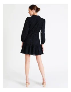 Fashion-forward and stylish: this dress will be on high rotation in your summer collection. Decorated with a broderie finish and a sash at the waist, this dress is super stylish and flattering. Wear it with heels for an elevated finish.