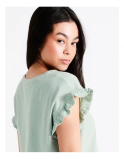 On-trend and easy to style this cotton-blend frill sleeve tee will have you covered from day to night. This tee is perfect for daily wear, designed with a frill sleeve detail and made from soft-touch materials.
