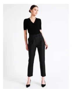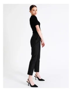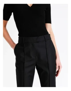 Tokito Pintuck Mid Rise Organic Blend Cotton Sateen Pants in Black