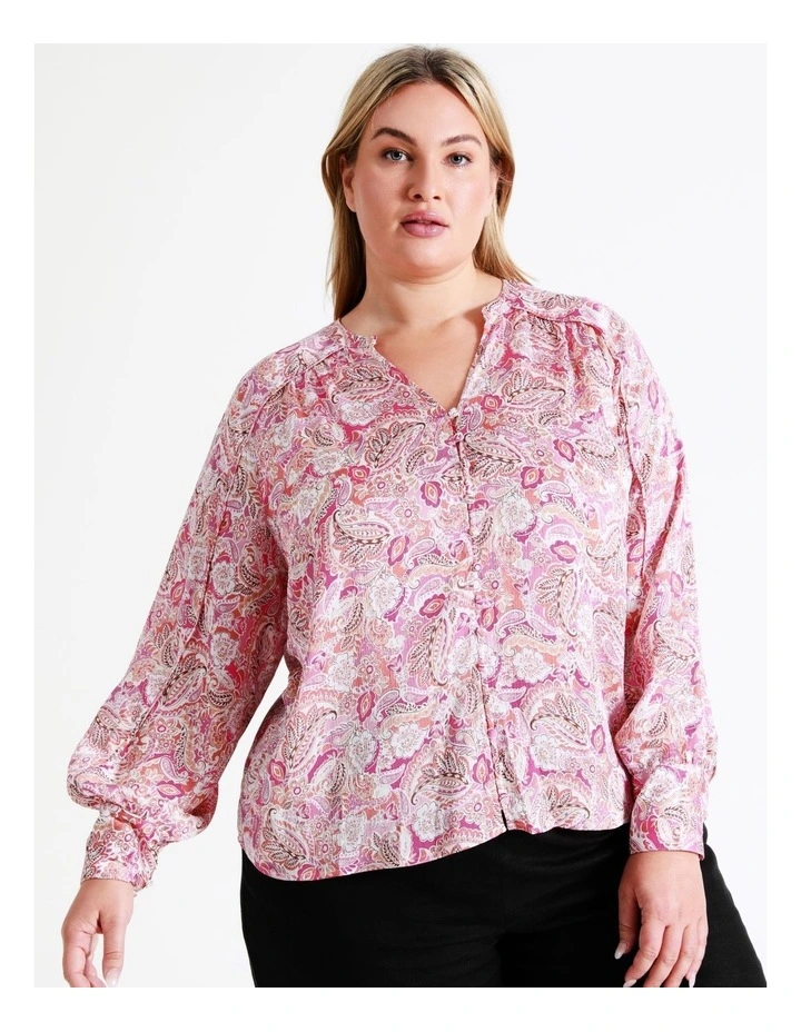 Chic and functional, this blouse will be a staple in your wardrobe. Appropriate for any season, the lightweight fabric is breathable and will get you through the day. Fastened with a button front, the top is also made with a gorgeous paisley print.