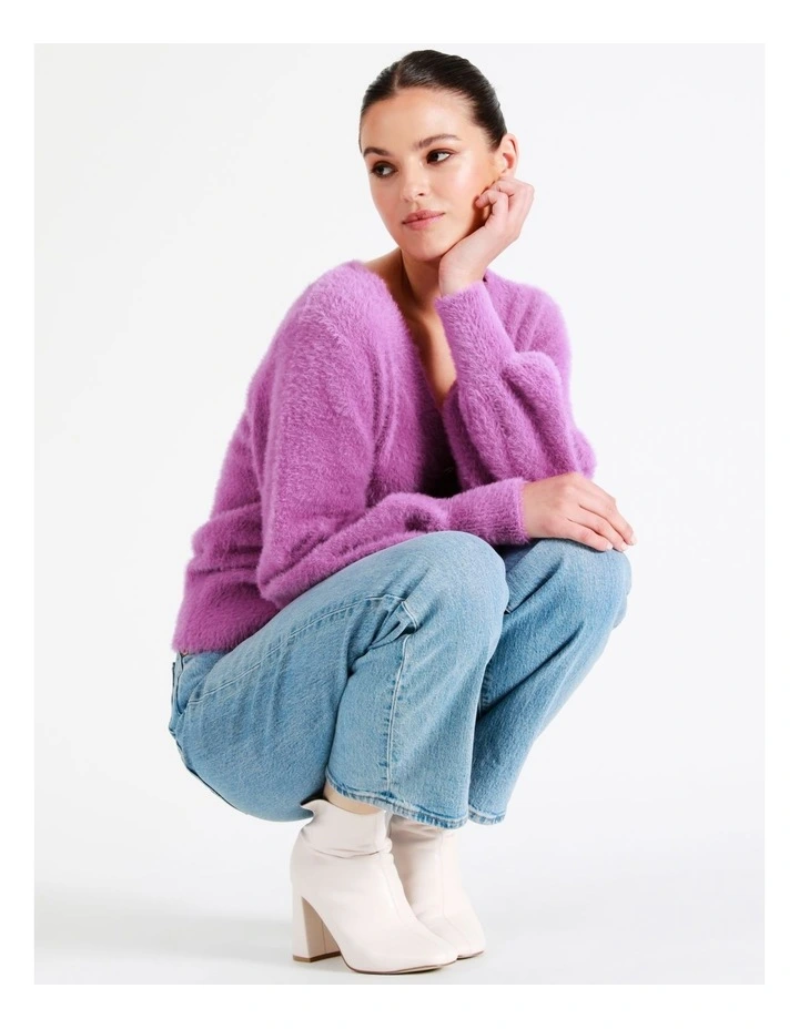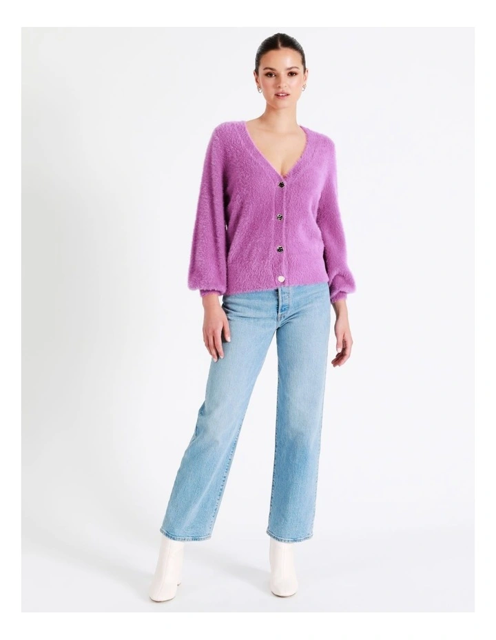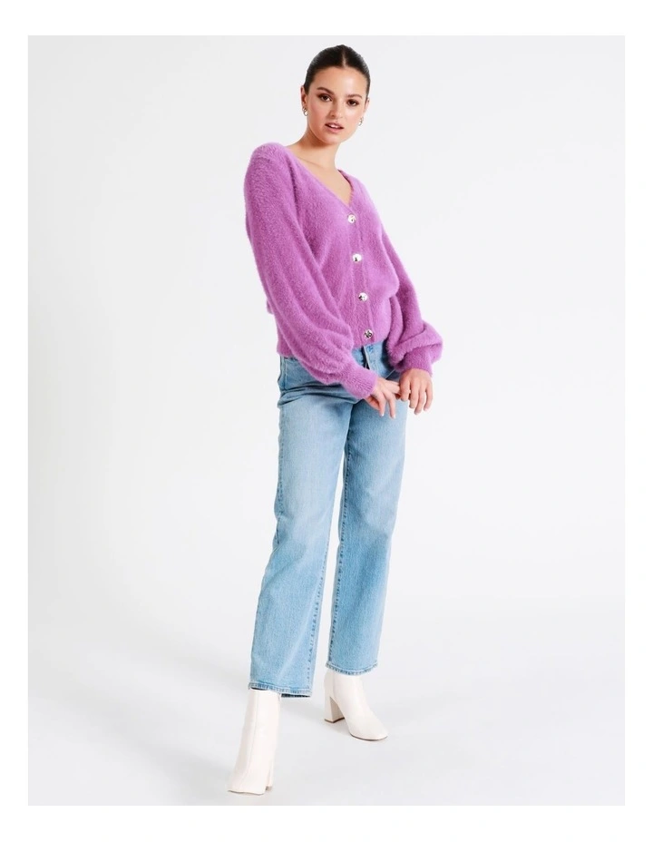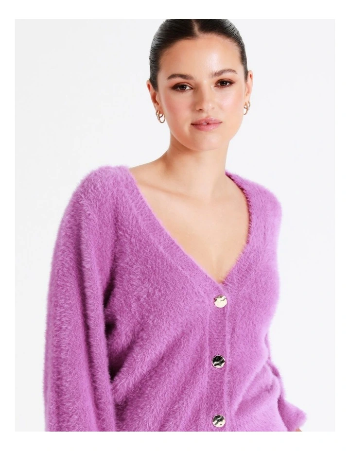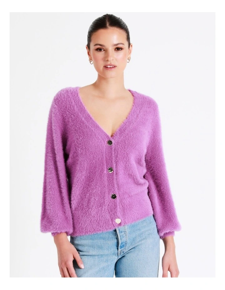 Tokito Recycled Blend Fluffy Knit Cardigan In Purple
