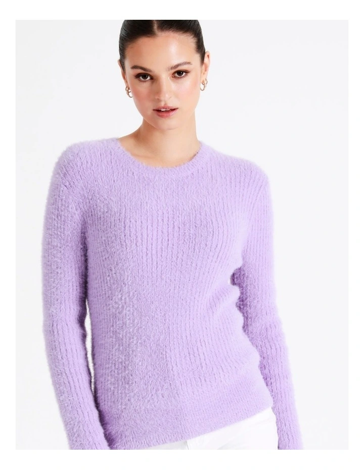 Upgrade your everyday wardrobe with high-quality basics. This long sleeve knit has a gorgeous fluffy finish, and comes in a beautiful purple hue that you’re sure to love. Wear it from day to night.