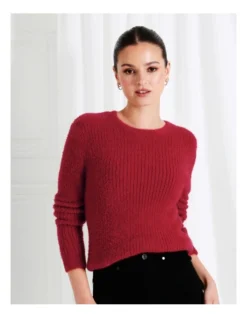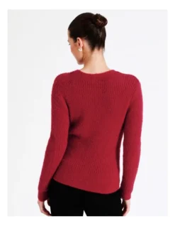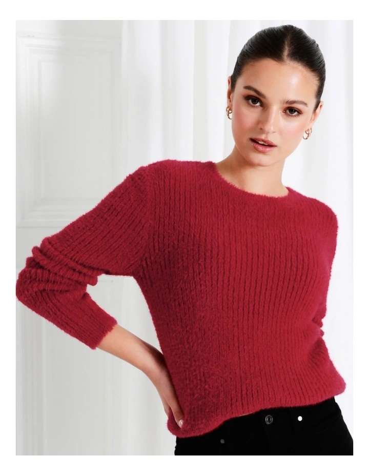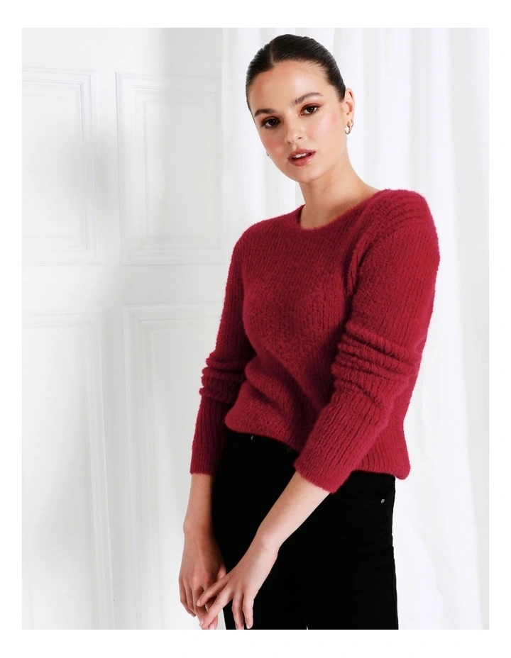 Upgrade your everyday wardrobe with high-quality basics. This long sleeve knit has a gorgeous fluffy finish, and comes in a beautiful wine red hue that you’re sure to love. Wear it from day to night.