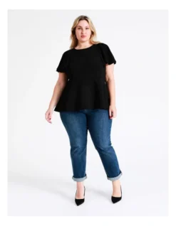 Tokito CurveĀ Recycled Blend Flutter Sleeve TopĀ In Black