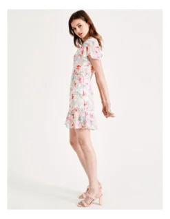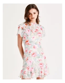 Beautiful and breathable, this mini dress is perfect for your next day out. Decorated with an all-over floral print and a flutter sleeve, this dress is ultra-flattering. Wear it with heels for an event-ready finish.