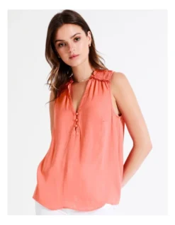 Tokito Recycled Blend Satin Frill Detail Tank in Apricot