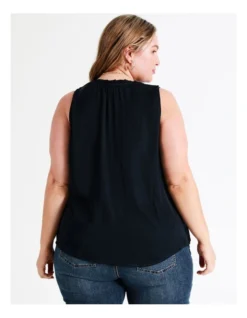 Tokito CurveĀ Recycled Blend Satin Frill Detail Tank in Navy