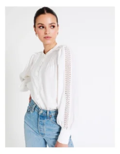 The perfect blouse for day to night wear. Graceful and chic, this blouse is designed with lace inserts for some added style. Wear it with your favourite denim for a stylish everyday look.