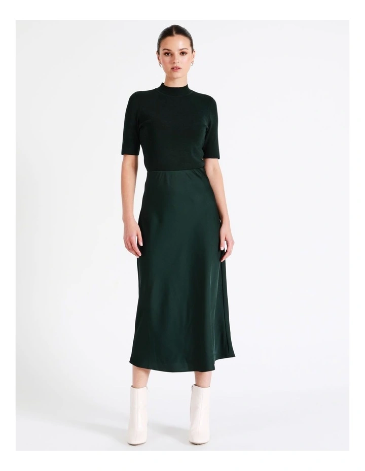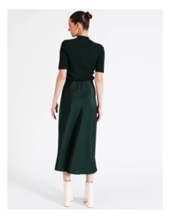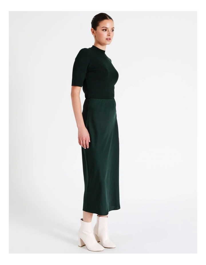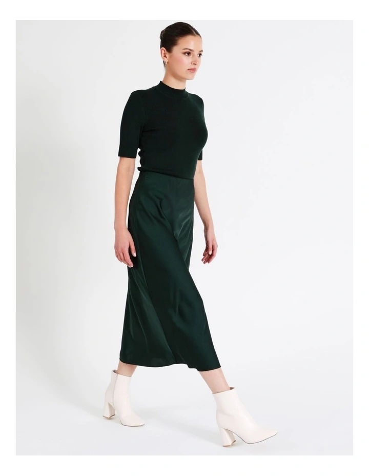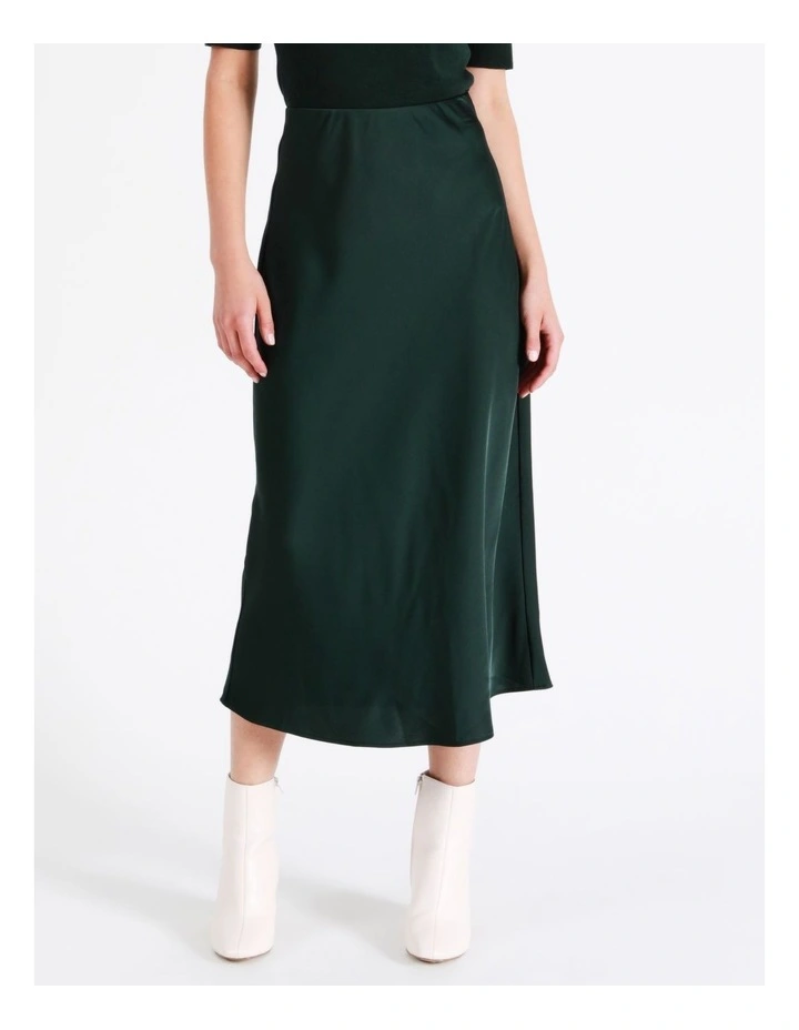 Style a luxe look with a midi slip skirt. This skirt has a satin-look finish and comes in a versatile forest green hue for easy styling. Wear it from day to night and everywhere in between.