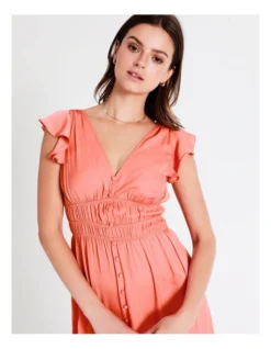 Tokito Recycled Blend Smocked Satin Midi Dress in Apricot
