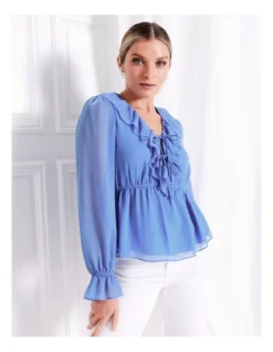 Tokito Recycled Blend Statement Frill Blouse in Blue