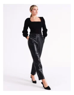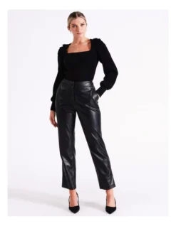 Create an effortlessly stylish look with faux leather pants. On-trend and figure-flattering, these pants are made from faux leather with a straight leg and high rise waist. Perfect for elevating your evening looks.