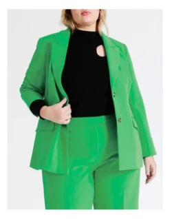 Tokito Curve Recycled Blend Single Breasted Fitted Blazer in Green