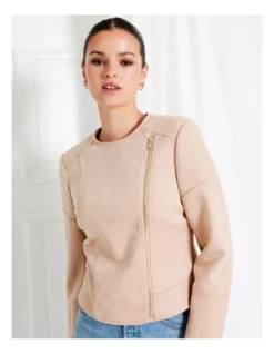 Tokito Recycled Blend Suedette Biker Jacket In Beige