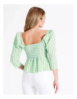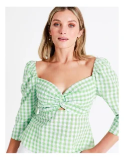 Tokito Recycled Blend Twist Front Check Top in Green