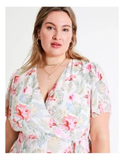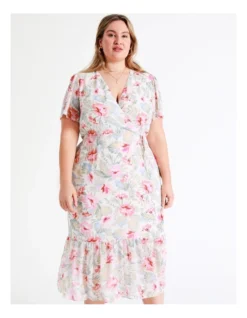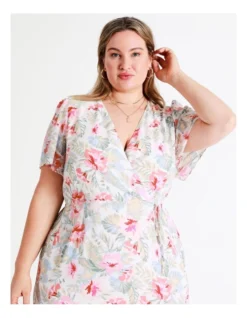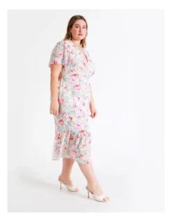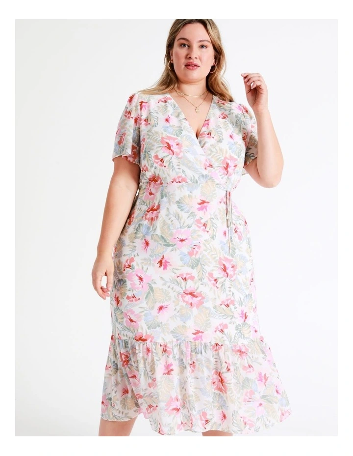Tokito Curve Recycled Flutter Sleeve Wrap Midi Dress In Assorted