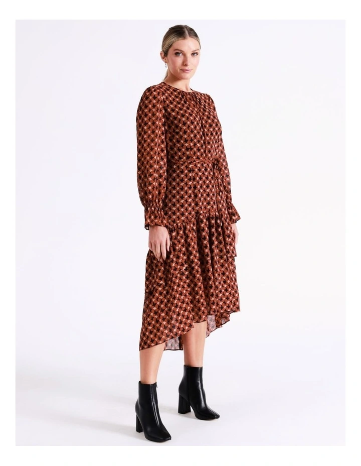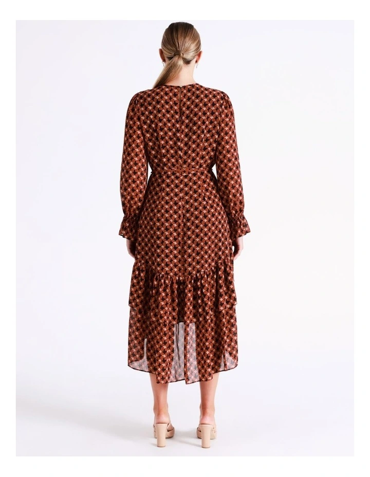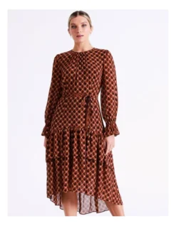 Be the best dressed guest at your next event. This sophisticated midi dress boasts a high-low hem and geometric print for style, and is made from soft-touch materials for comfortable wear. Perfect for all your upcoming evening events.