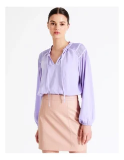 Tokito Recycled Satin Gathered Shoulder Blouse in Lavender