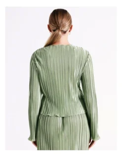 Tokito Recycled Satin Plisse Flute Sleeve Top in Sage