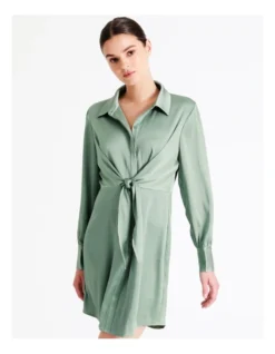 Style a casual-chic look with a beautiful shirt dress. With a satin-look finish, this dress feels super soft and lightweight on the skin and boasts a sash at the waist for an adjustable silhouette. Wear it from day to night.