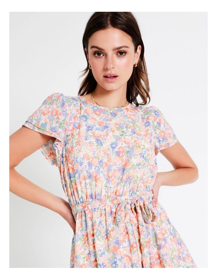This midi dress is designed to fit and flatter, with a flowing design that is sure to suit any event. Crafted from a lightweight fabrication, this dress boasts a tiered structure with ruffle details and an all-over daisy print. Perfect for leaving an impression, this dress is destined for your next night out.