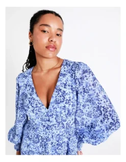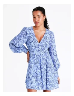 Get date night ready in an on-trend mini dress. With a fitted silhouette and flared skirt, this playful dress is decorated with a vibrant ditsy print and puff sleeves. Dress it up with heels for the perfect look.