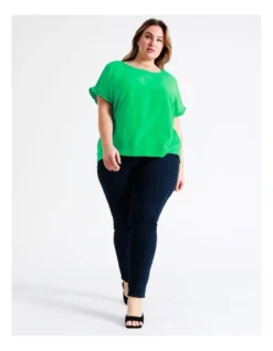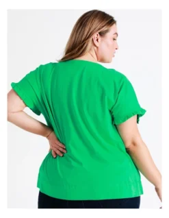 Tokito Curve Relaxed Frill Sleeve Top in Green