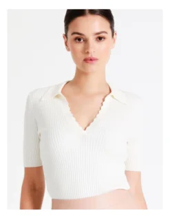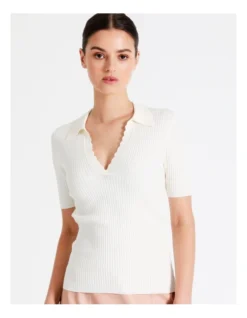 Tokito Rib Polo With Scallop Neck in White