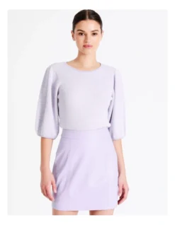 Tokito Rib Puff Sleeve Knit Top in Lavender