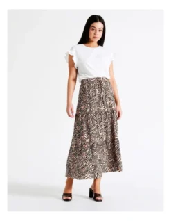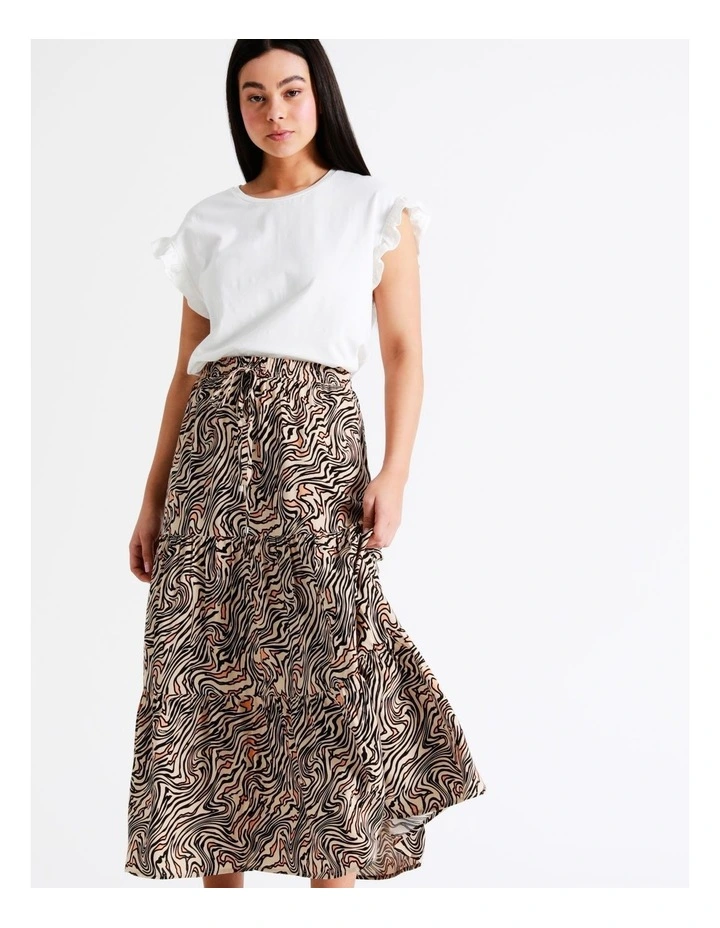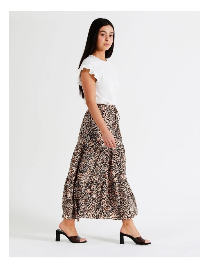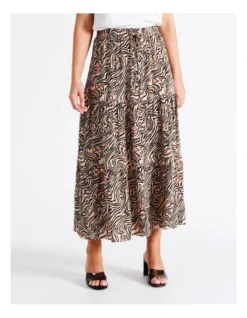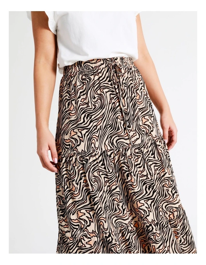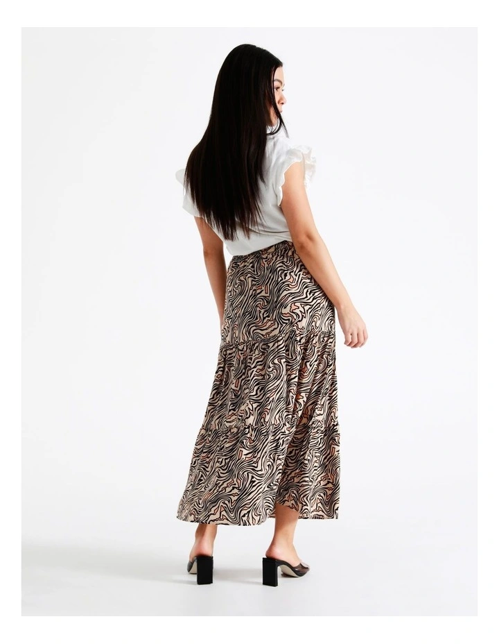 Make a statement in a fashion-forward midi skirt. This skirt has a lightweight and breathable feel and boasts a striking tiger swirl print. Wear it with heels for an event ready finish.