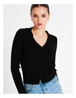 Tokito Twist Front Long Sleeve Knit Top In Black